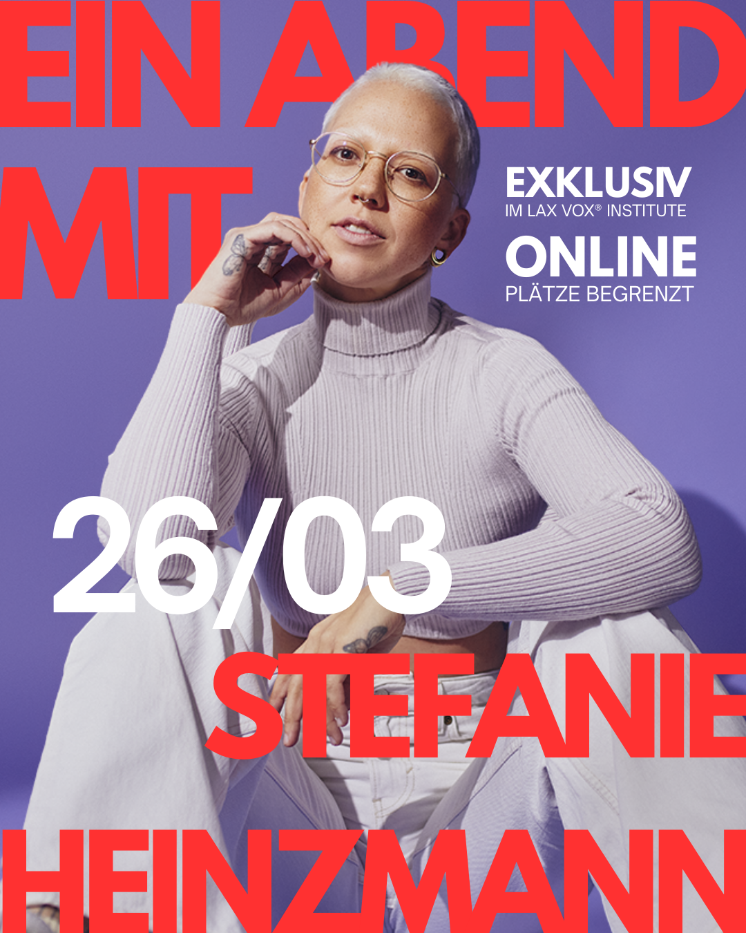 Erlebe einen persönlichen Abend mit Stefanie Heinzmann: ehrliche Gespräche über ihre Karriere, ihre Stimm-Geschichte, persönliche Wendepunkte und den Prozess des Songwritings.